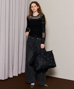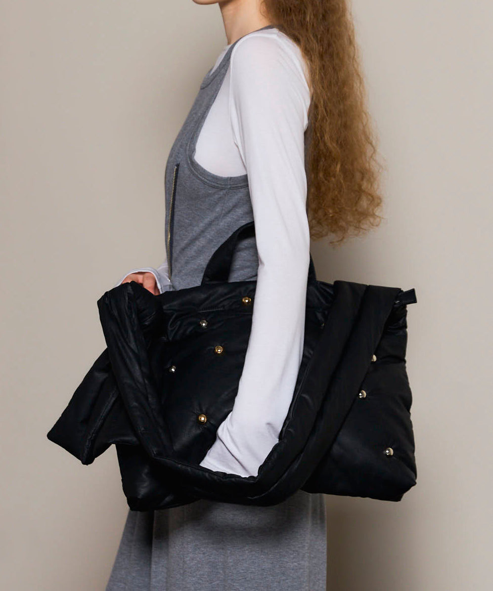 ・全体にMIXカラーのスタッズをあしらうことでエッジの効いたデザインに。