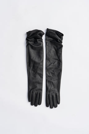 Side Gathers Lamb Leather Long Gloves