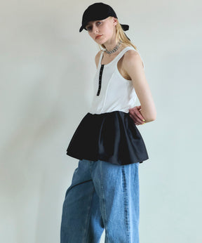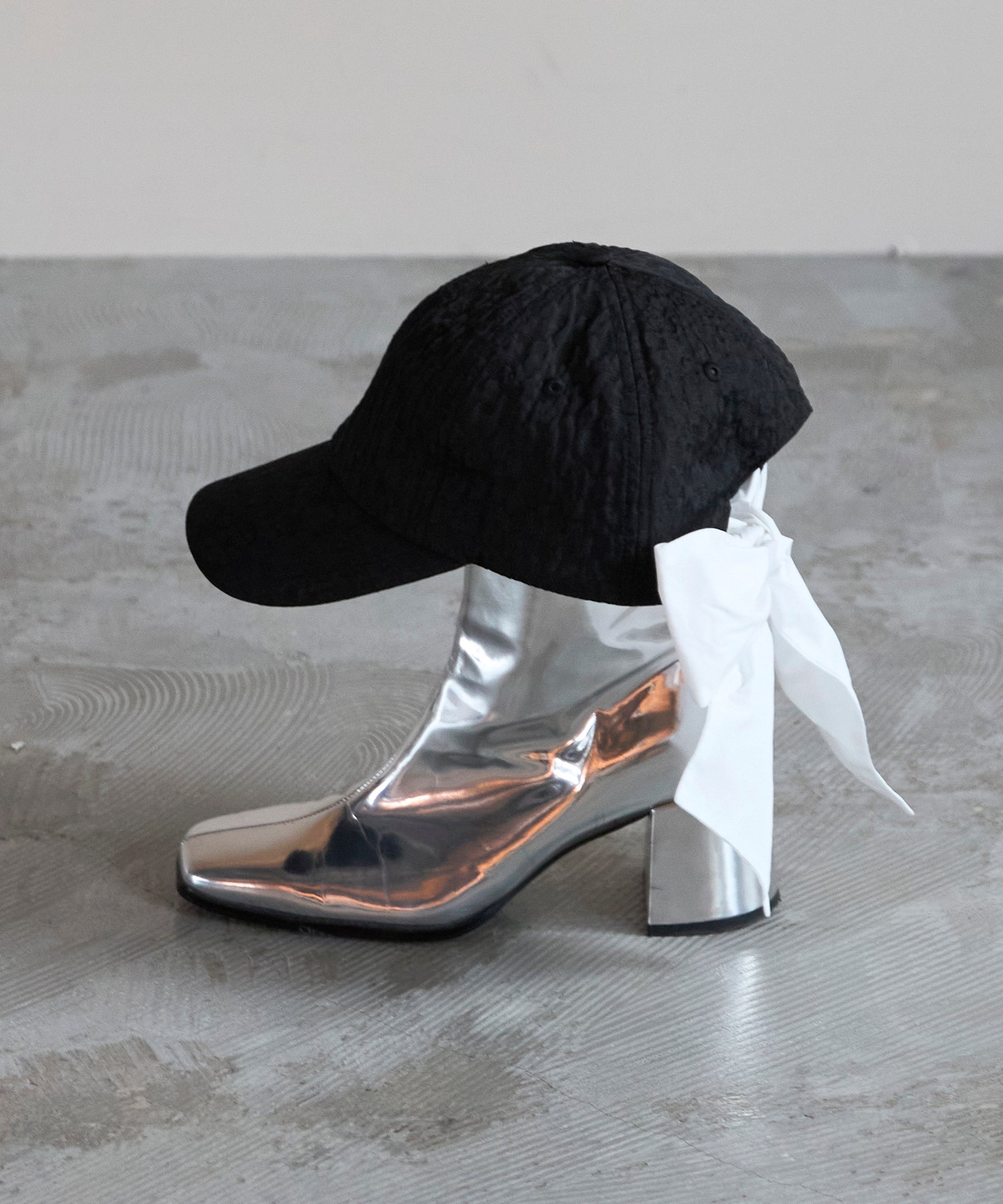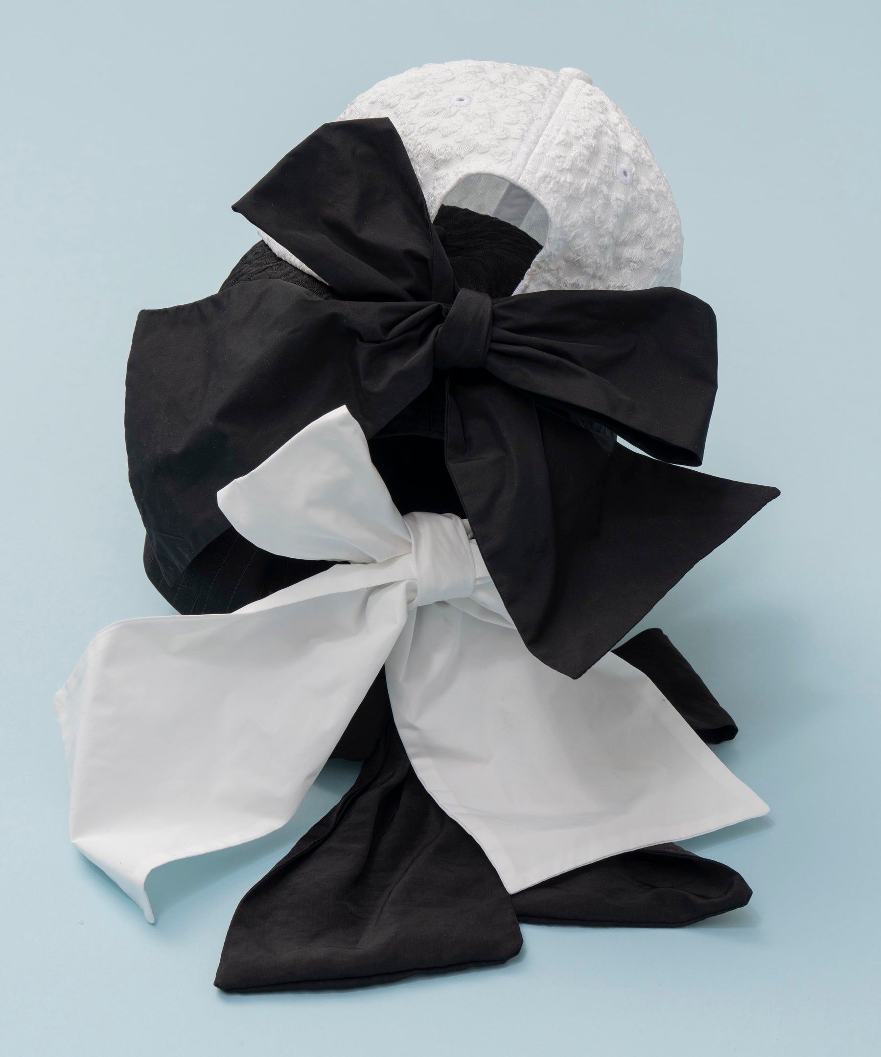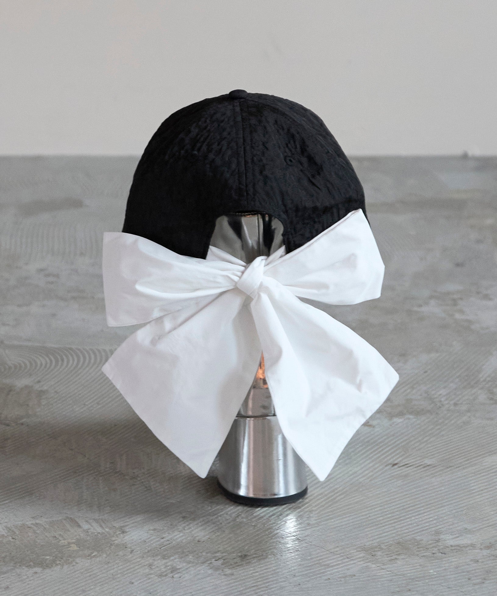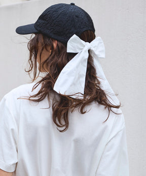 リボンとキャップの異なる素材を組み合わせることで、奥行きのある表情と洗練されたムードをプラス。後ろ姿に映えるボリューミーなりボンが、可愛らしいに個性を主張します。