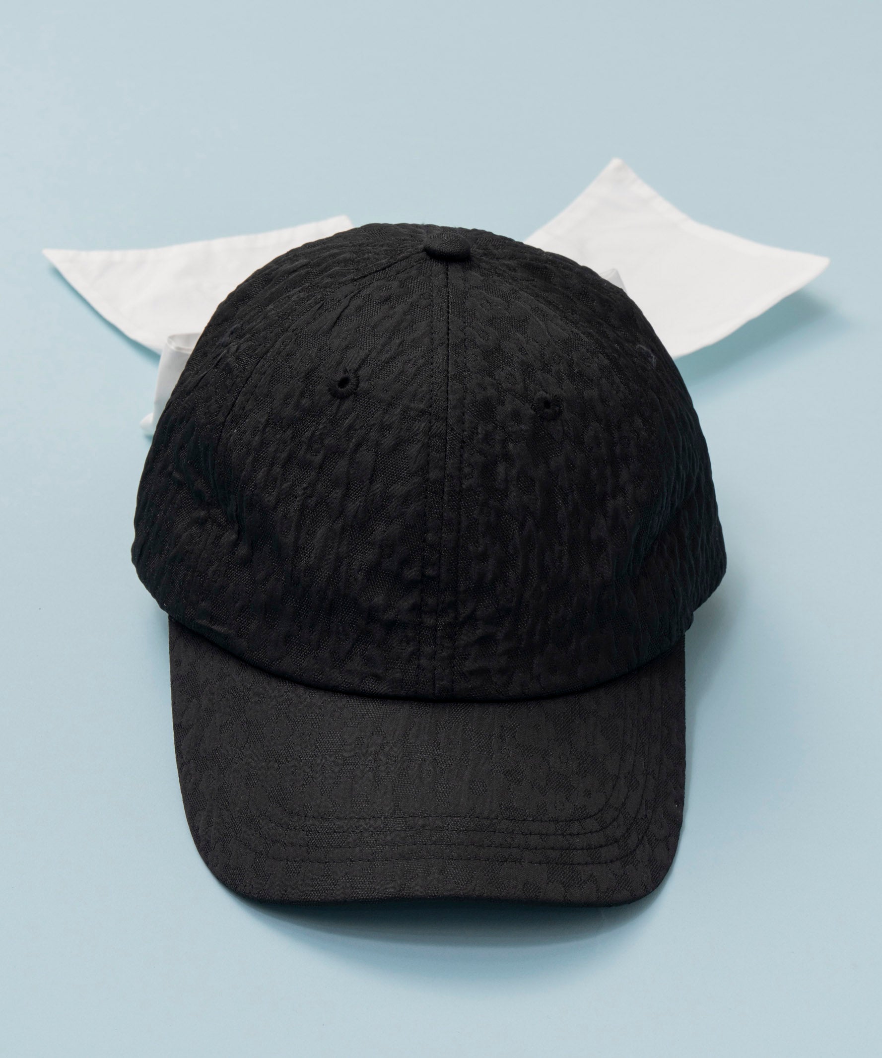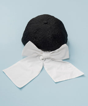 異素材&バイカラーデザインが目を惹く、バックリボンディテールが印象的なデザインキャップ。