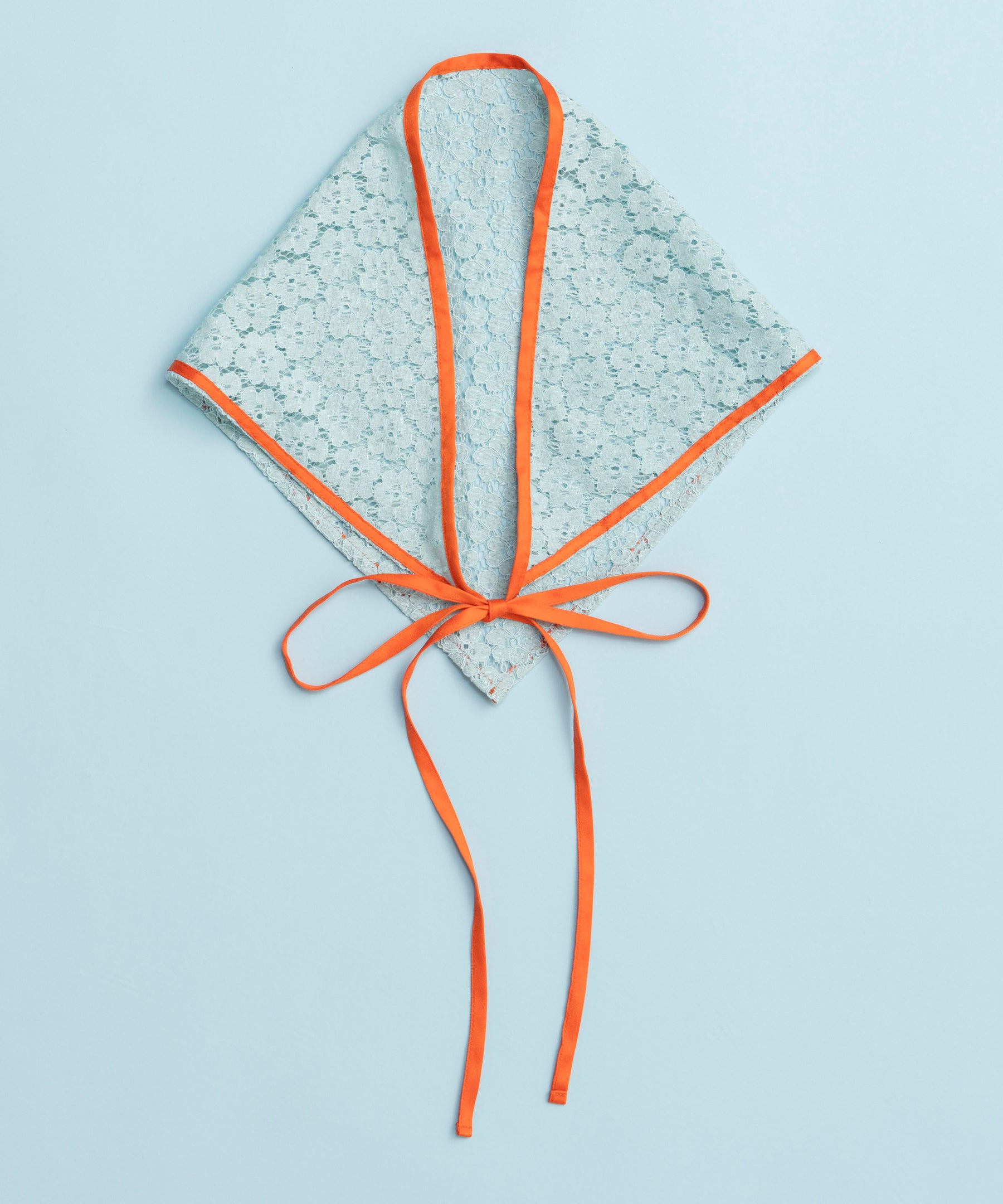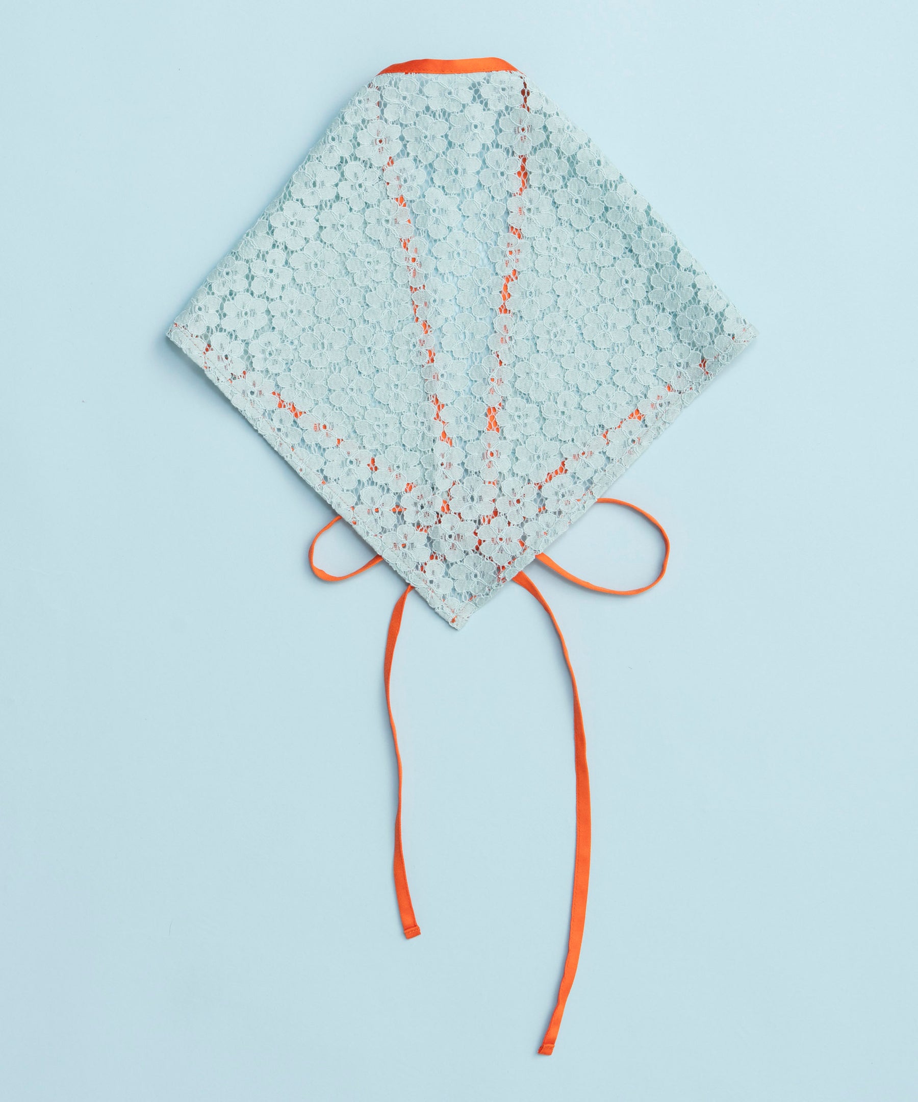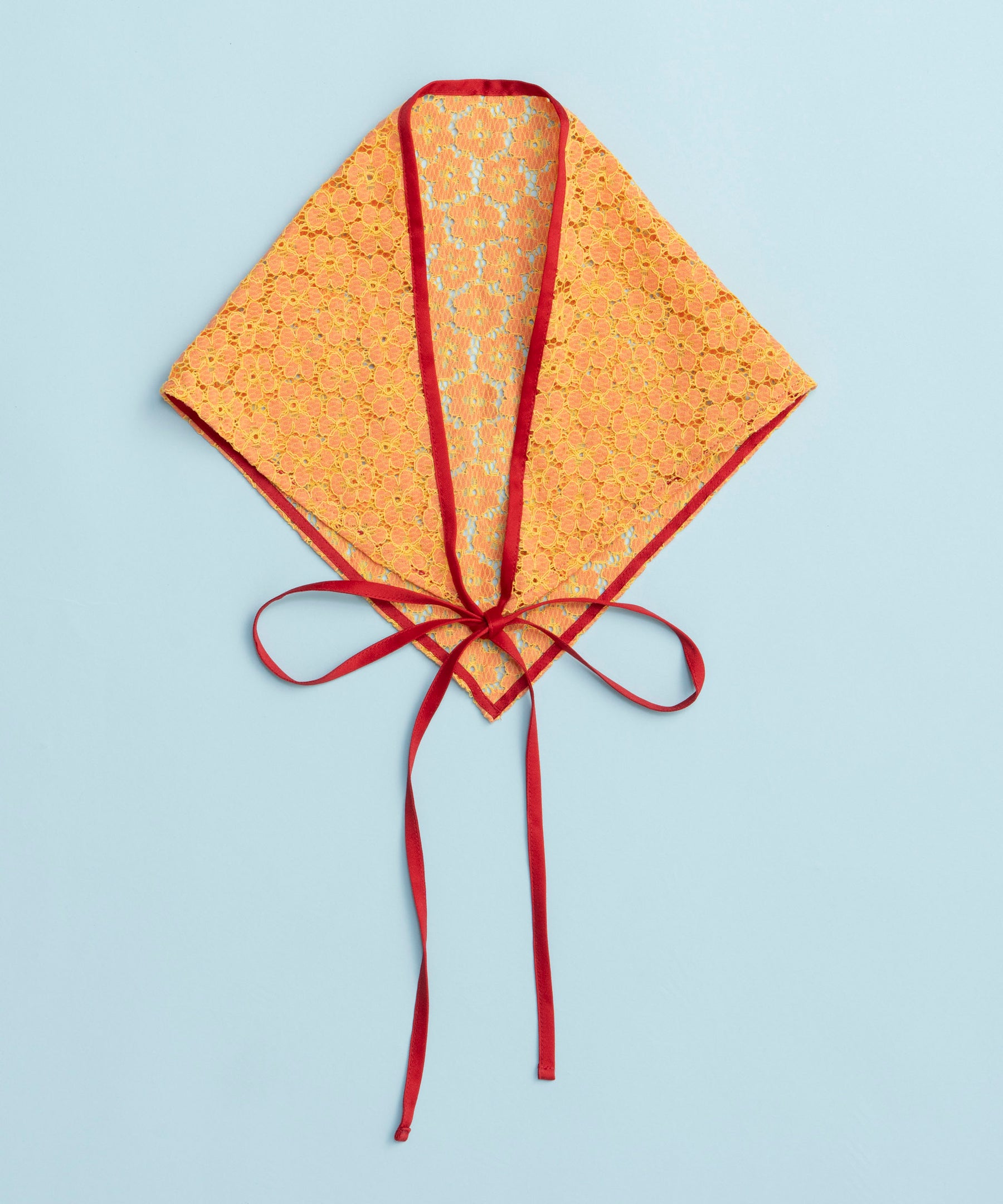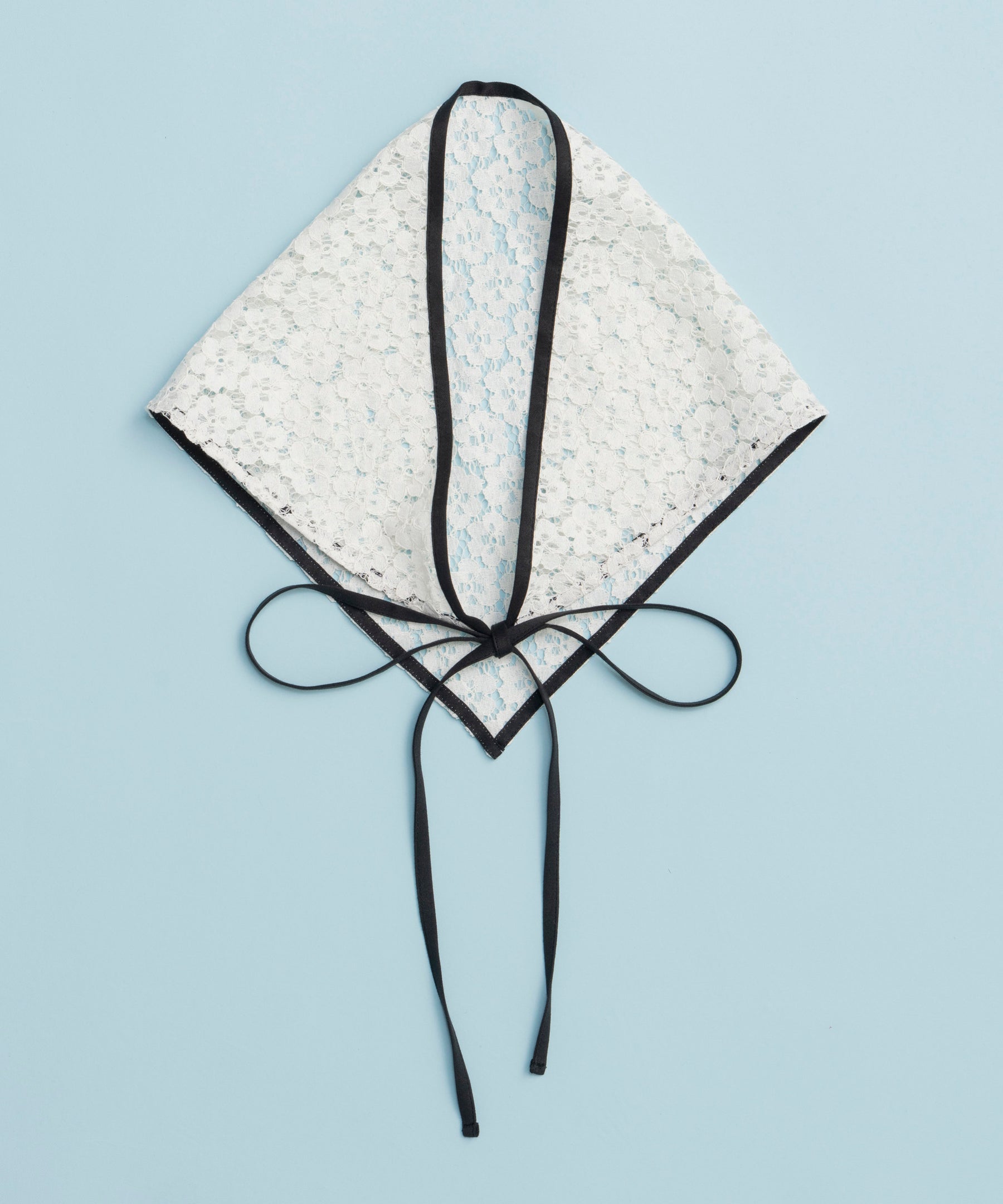 花のような丸いモチーフが並ぶ、可憐でどこかノスタルジックなレース柄が印象的なバブーシュカスカーフ。