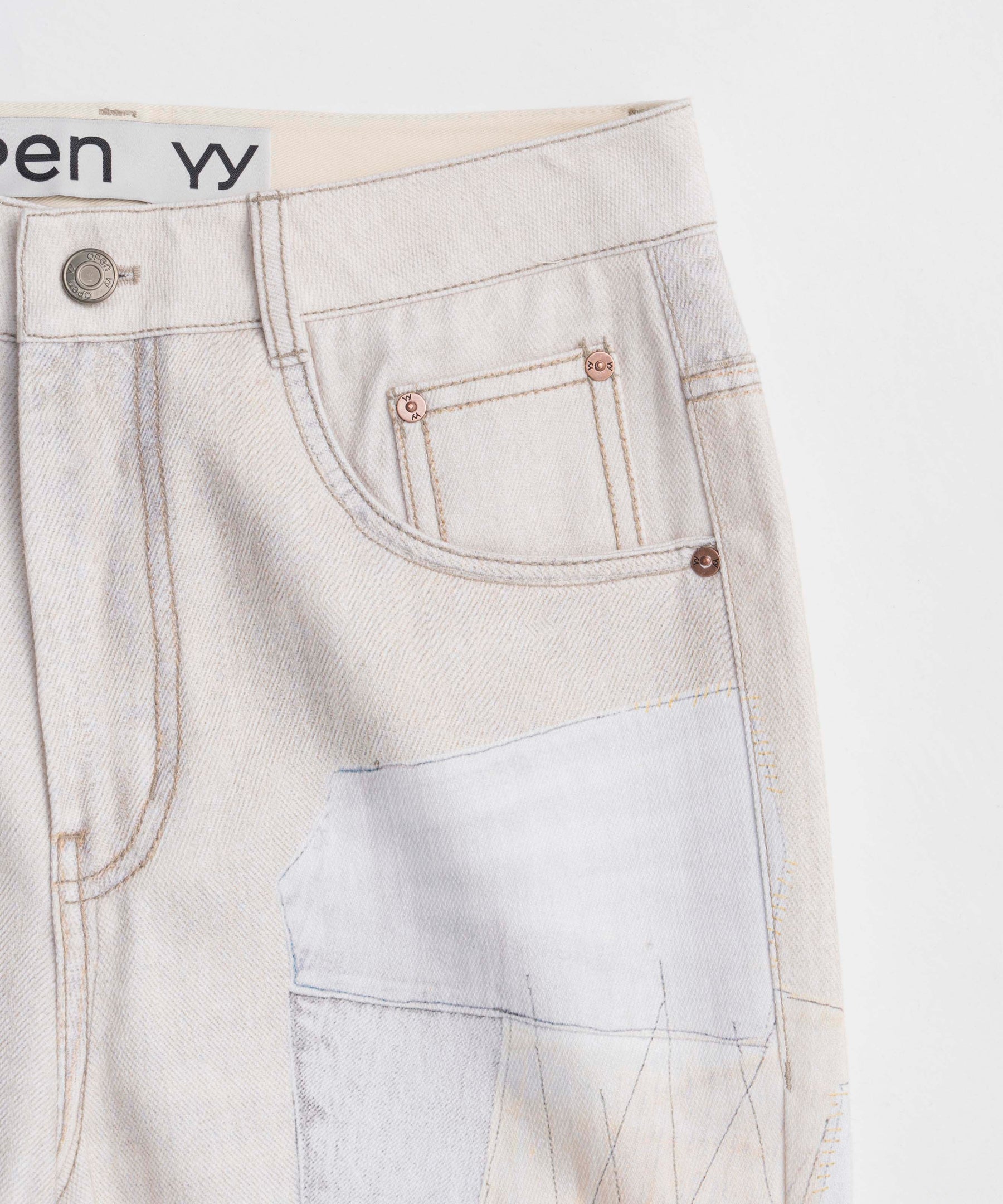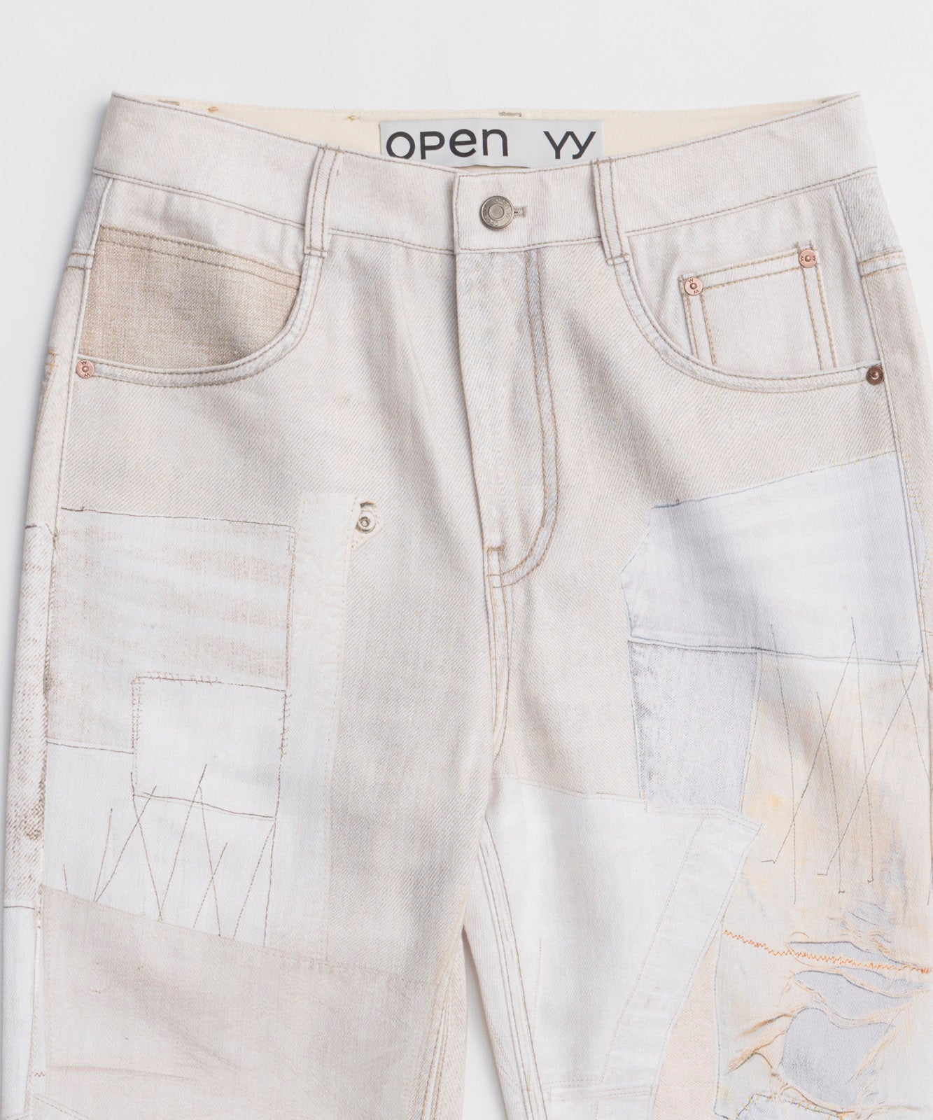 【SALE】【OPEN YY】PATCHWORK EFFECT LOOSE BOOTCUT