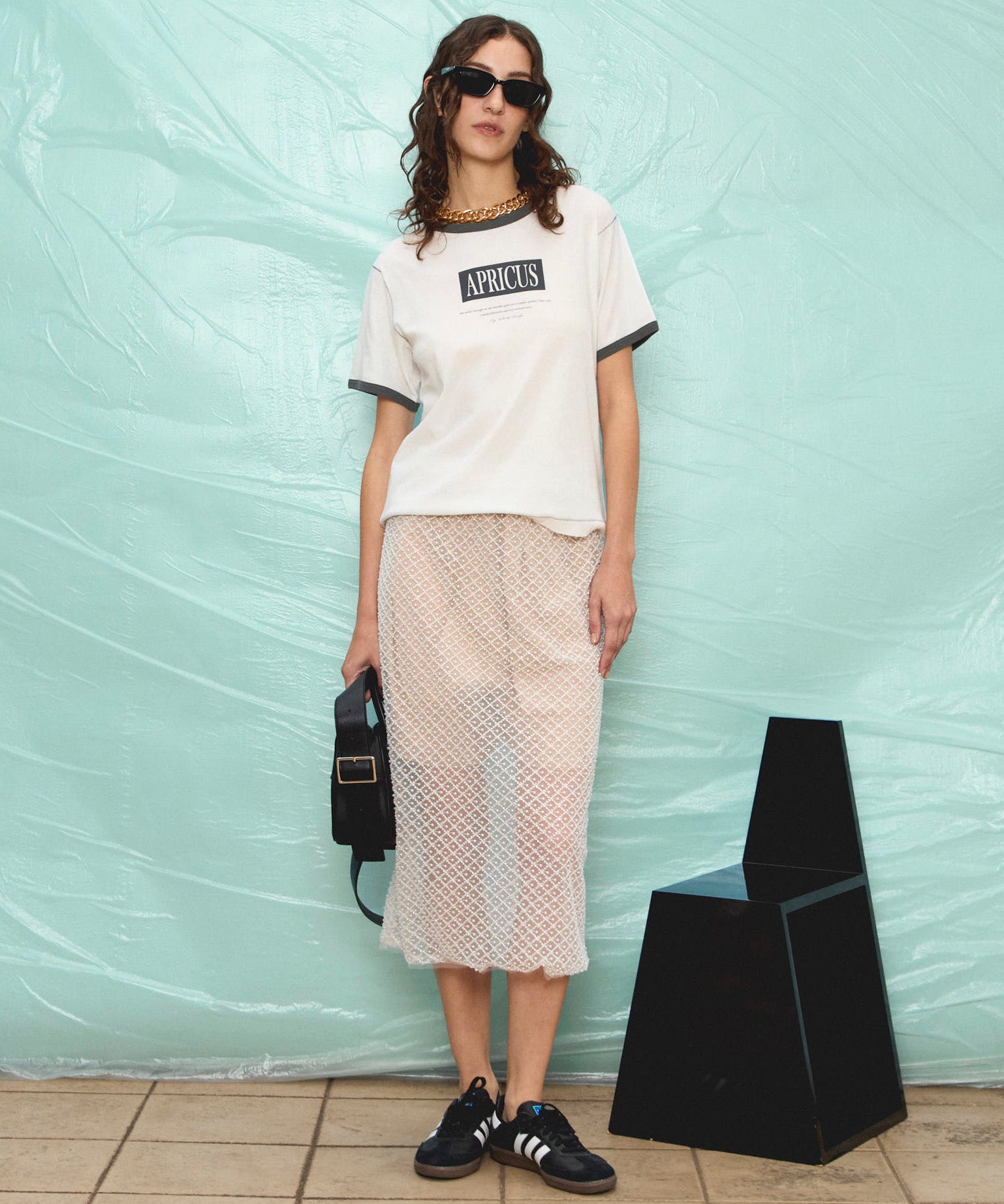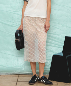 ・ペチパンツが付いているので一枚でスカートとしての着用はもちろん、透け感を活かしたボトムスとのレイヤードスタイリングも楽しめます。