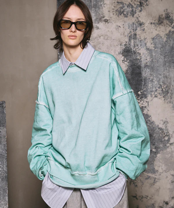 Heavy-Weight Sweat Embroidery Damage Over-Dye Crew Neck Pullover