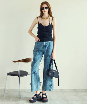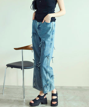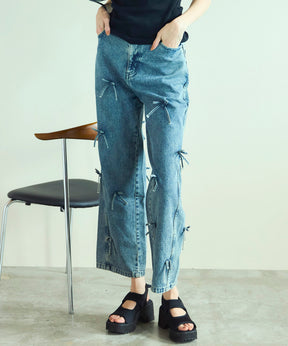 这些引人入胜的牛仔裤具有今年完美的丝带细节。
