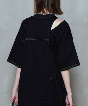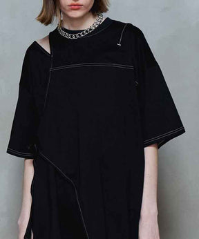 - 一件顶上的T恤,设计看起来像您穿着两件T恤一起分层。