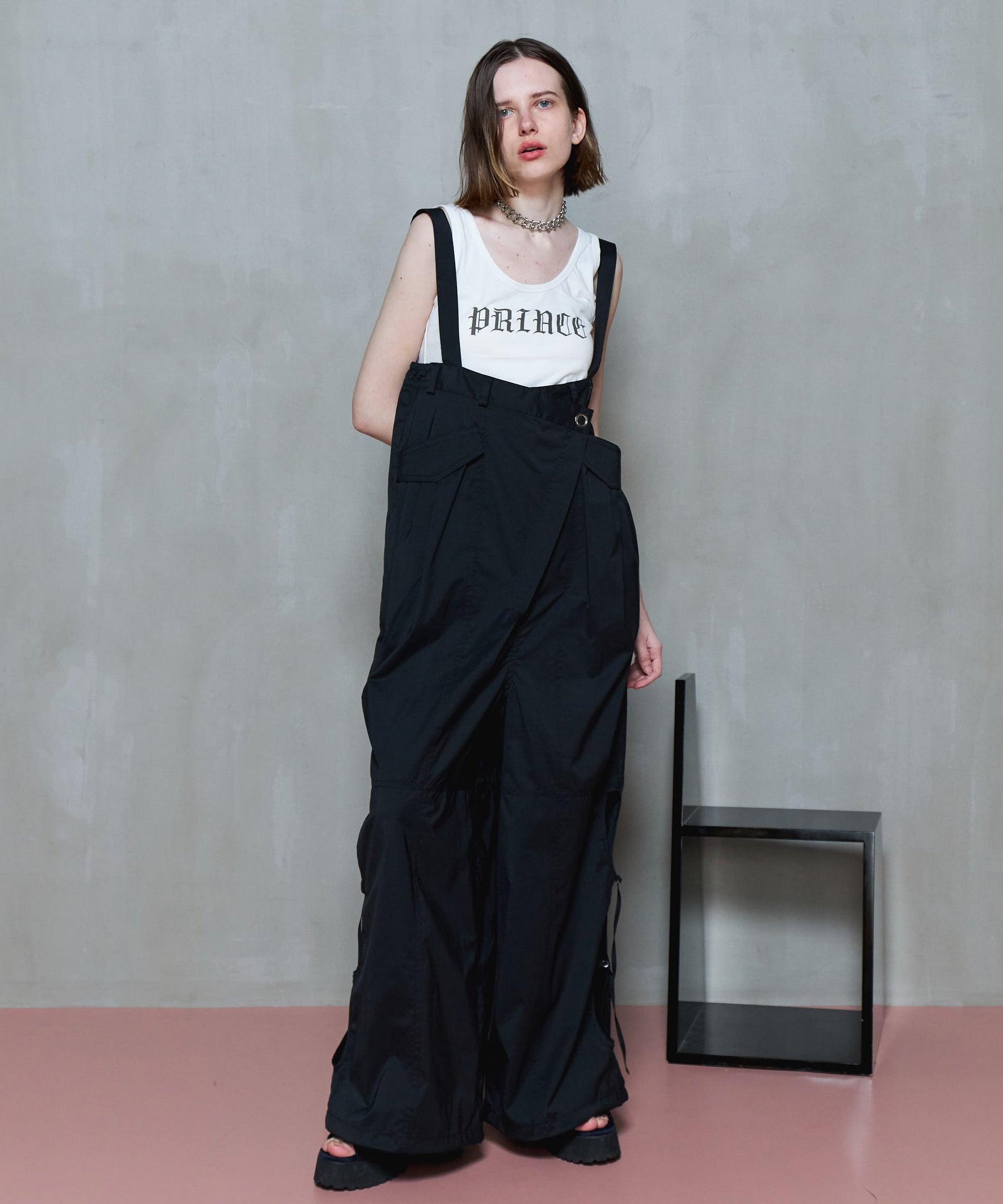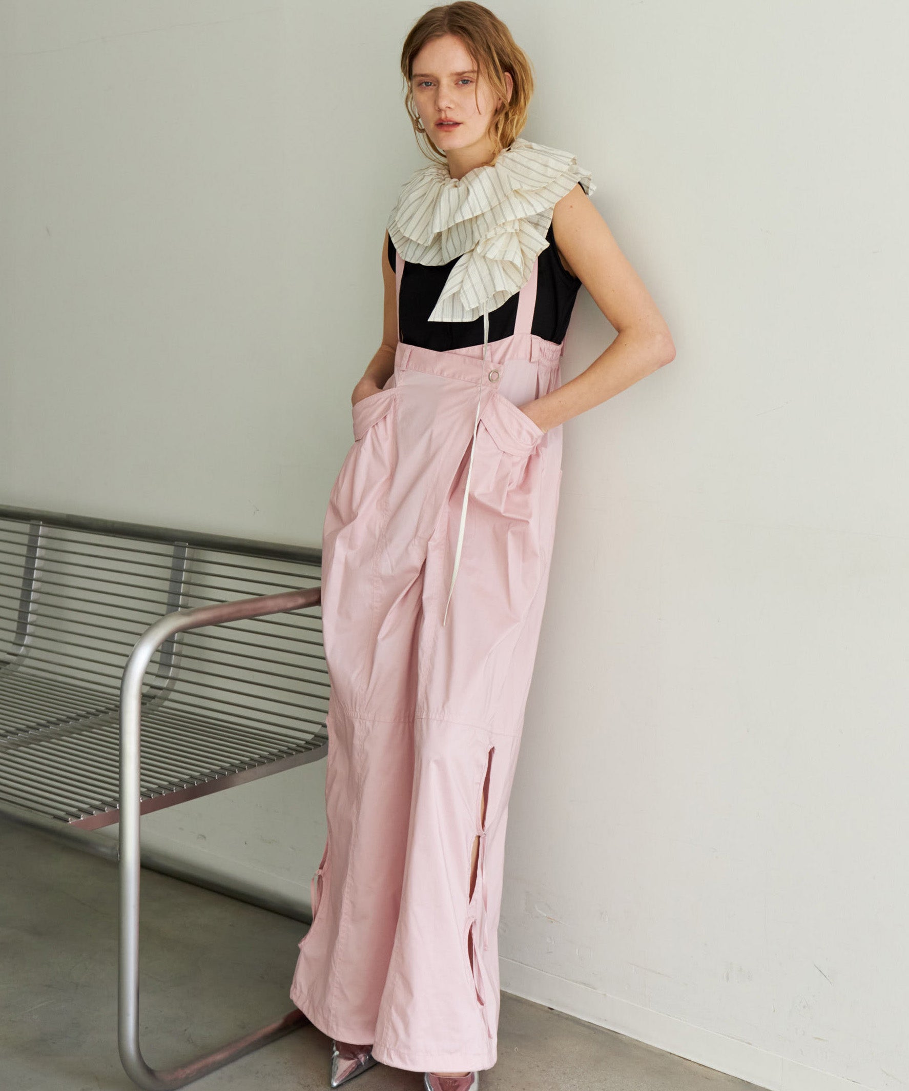 吊带可以通过垂下来作为裤子穿。