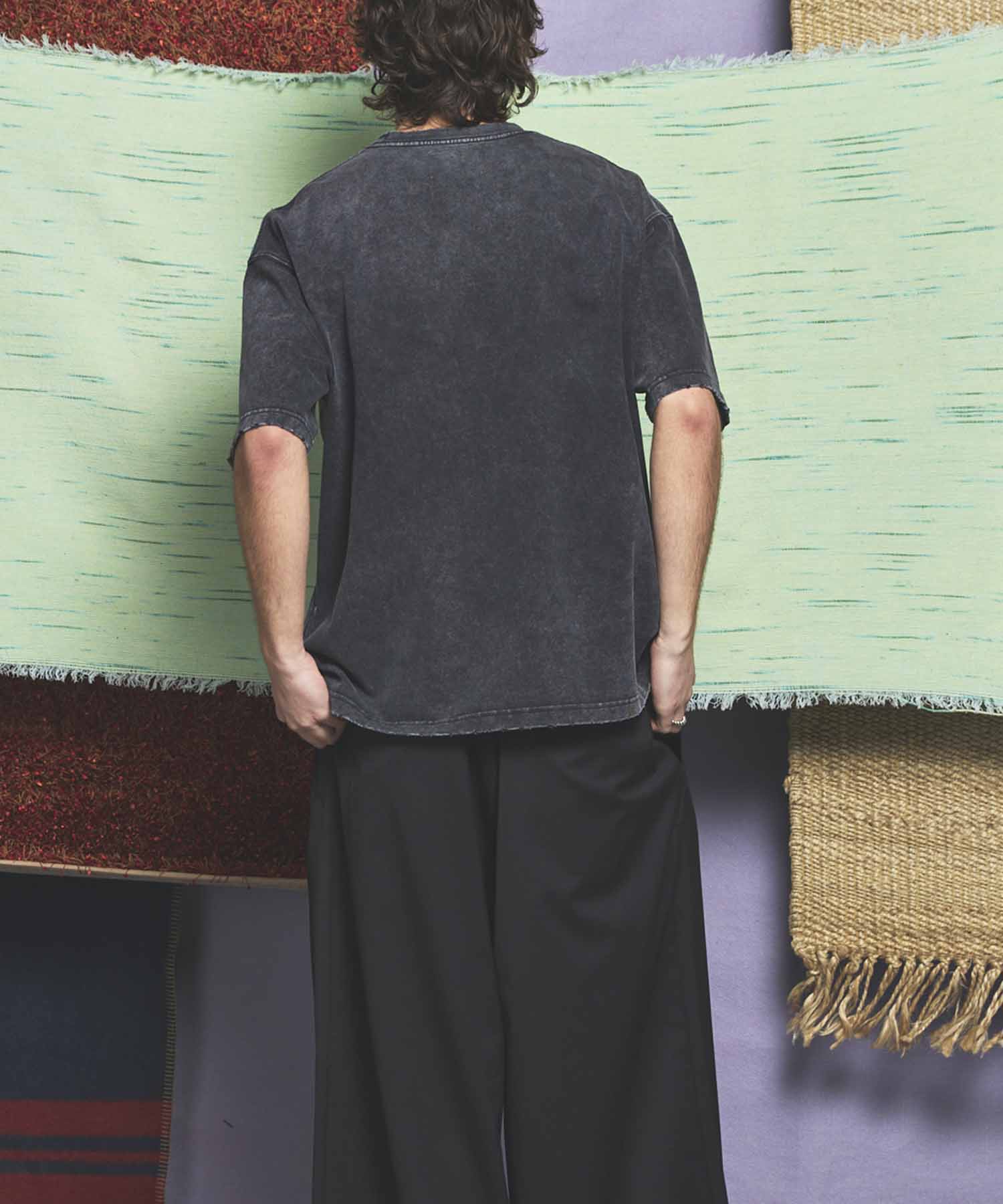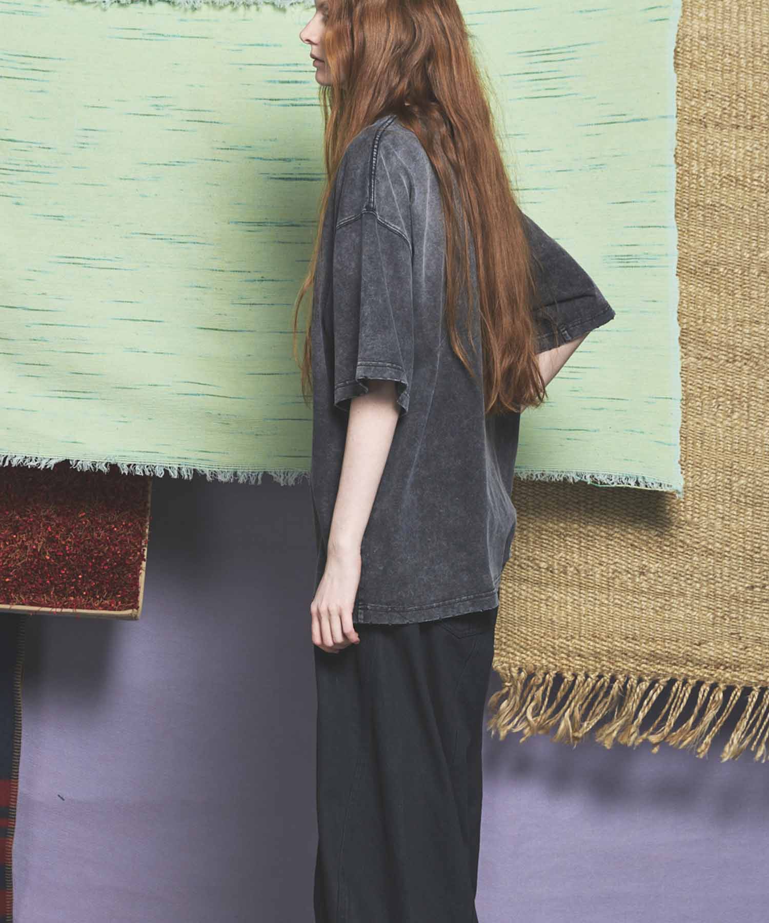 由于做虽然是重型但意识到穿着的感觉的线番手的事,减轻粗糙,轻松地象能穿一样地缝制后进行硫化染色,并且由于反复牙线加工的事,长年穿着洗了的那样的现实的yuudau感的a 颜色和手感的表现