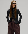 立体的肋眼针织衫施加截断和损坏加工,休闲地完成,钩和眼胶带的黑色把整体的印象向模式靠近的混合感有的条款。